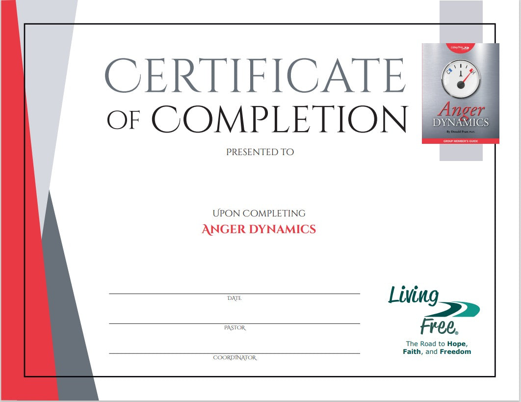 An attractive certificate can be awarded to encourage the participants of each study. This certificate is used to recognize the successful completion of the study: Anger Dynamics.