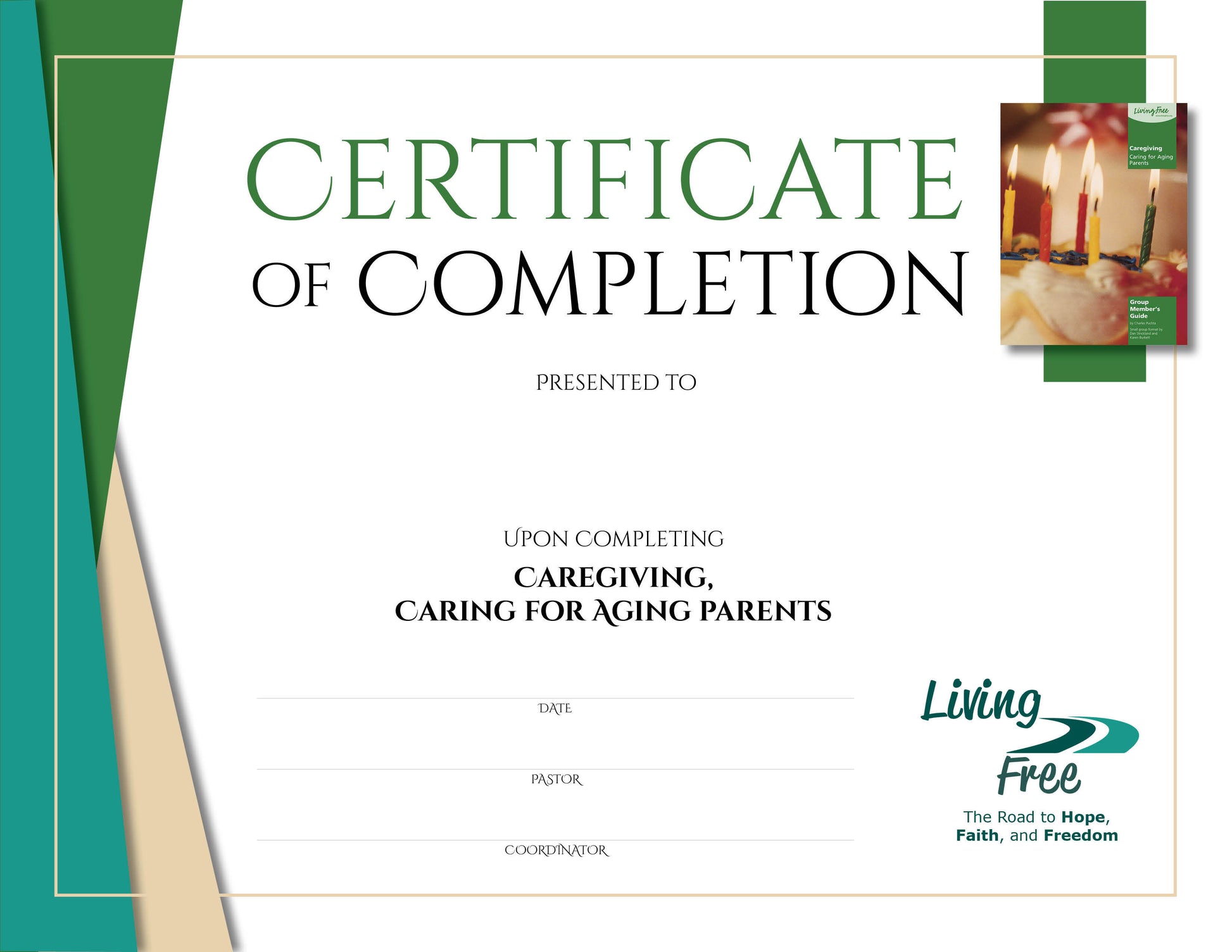 An attractive certificate can be awarded to encourage the participants of each study. This certificate is used to recognize the successful completion of the study: Caregiving: Caring for Aging Parents.
