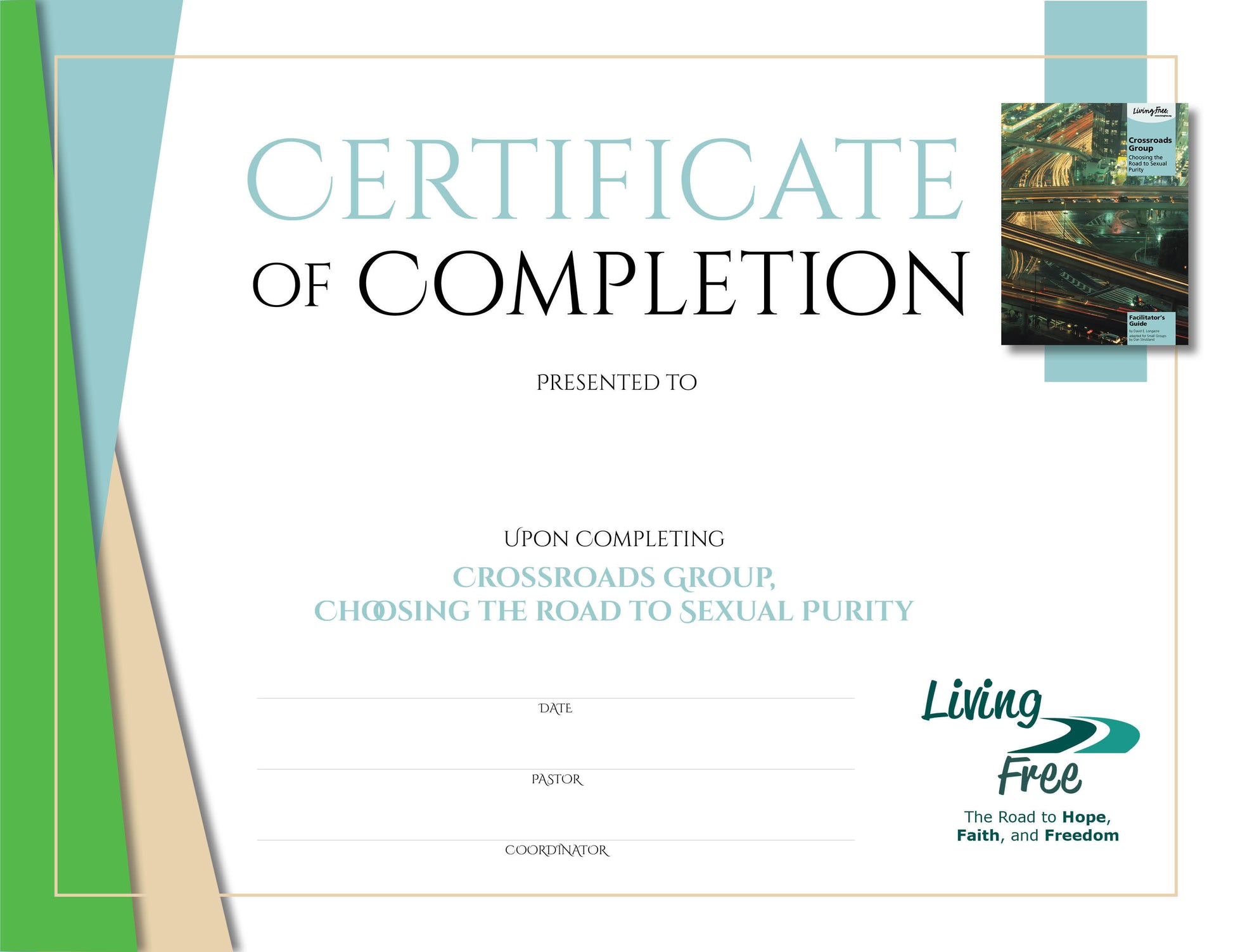 An attractive certificate can be awarded to encourage the participants of each study. This certificate is used to recognize the successful completion of the study: Crossroads.