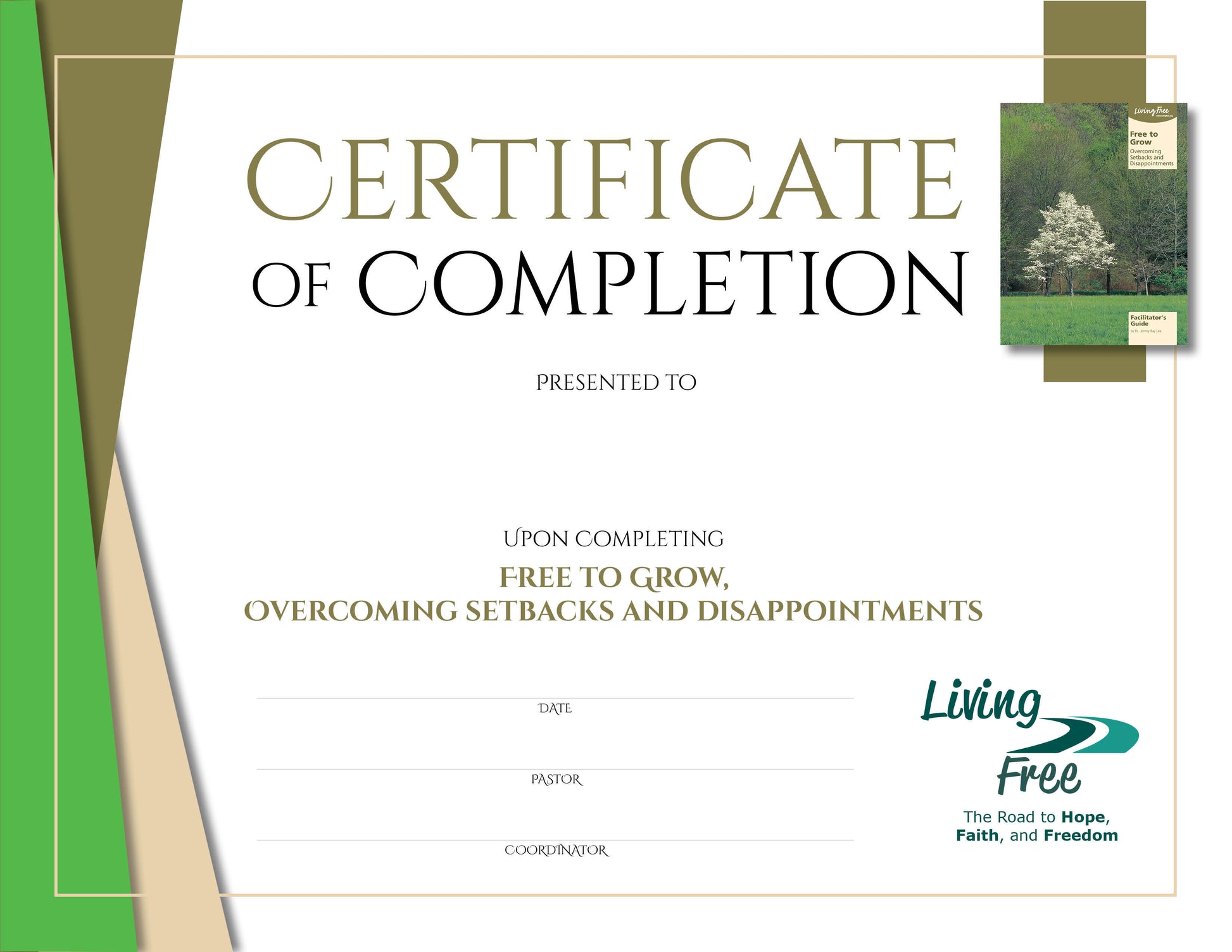An attractive certificate can be awarded to encourage the participants of each study. This certificate is used to recognize the successful completion of the study: Free to Grow.