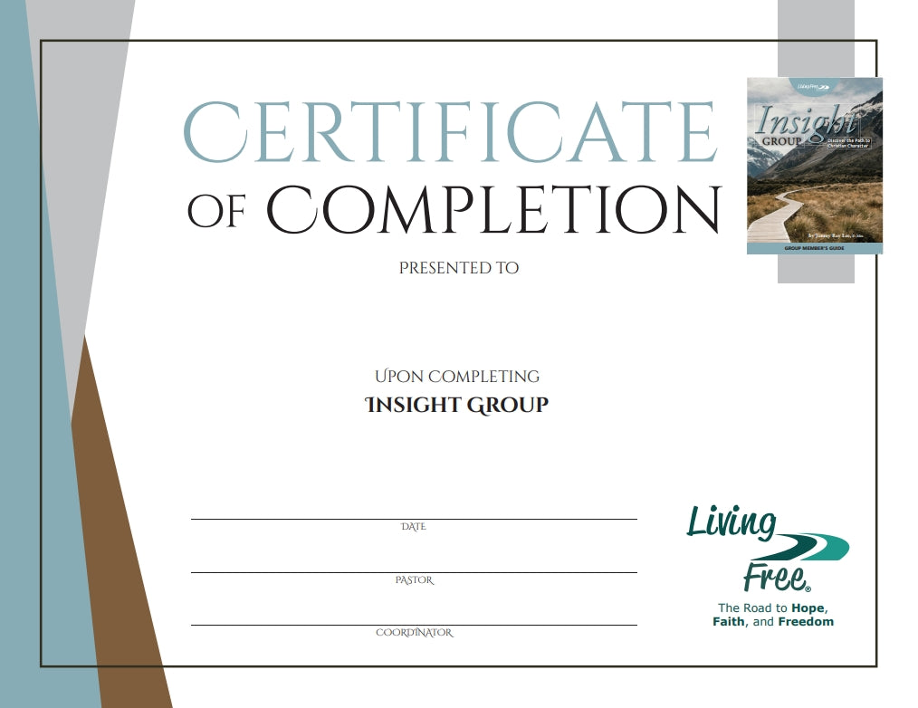 An attractive certificate can be awarded to encourage the participants of each study. This certificate is used to recognize the successful completion of the study: Insight Group.